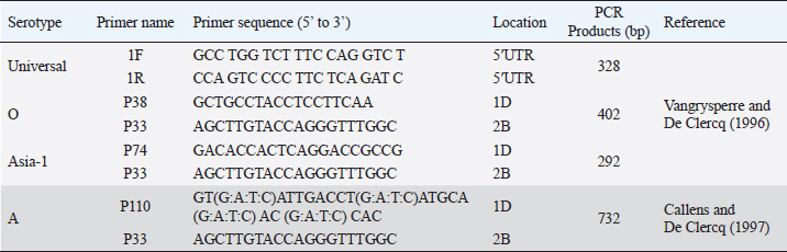 AbstractBackground: Foot-and-mouth disease (FMD) is an endemic disease of cloven-hoofed animals in Bangladesh and multiple outbreaks occur every year because of the FMD virus (FMDV). Aim: The aim of the present investigation was to determine the molecular characterization of the VP1 coding region of FMDV serotype O outbreak in cattle. Methods: A total of four tongue epithelial specimens were collected from clinically FMD-positive cattle during June 2018 in Manikgonj district of Bangladesh. Results: All four isolates were recorded positive for FMDV serotype O. The phylogenetic analysis showed that two isolates were clustered within an emerging novel sublineage Ind2001BD1 under lineage Ind2001 of FMDV serotype O, which was identified during 2012–2016 in Bangladesh. One isolate was clustered within the lineage PanAsia of FMDV serotype O and was closely related to an isolate identified in Nepal in 2009. The phylogenetic reconstruction revealed that all the four isolates belong to the Middle East–South Asia topotype. Conclusion: Therefore, multiple lineages of the FMDV serotype O are circulating among the cattle in the outbreak area, which make it more complex for the FMD control program in Bangladesh. A comprehensive study on the genetic characteristics of FMDV across the country is required for effective FMD prevention and control strategy. Keywords: Cattle, Foot-and-mouth disease, Ind2001BD1, Lineage, PanAsia. IntroductionFoot-and-mouth disease (FMD) is a viral disease caused by the FMD virus (FMDV), a member of the Aphthovirus genus of the Picornaviridae family (Bachrach, 1968; Domingo et al., 2002). It is an acute, highly contagious disease among cloven-hoofed animals, like cattle, buffalo, pigs, sheep, goats, wild ruminants, etc. The prominent clinical signs of FMD are high fever, drooling of saliva, vesicles on tongue, gums, and interdigital spaces (Kitching, 2002; Grubman and Baxt, 2004). Therefore, the animal becomes emaciated, resulting in loss of meat and milk production, abortion of pregnant cows, death of infected young calves, restriction in international trade, and medication cost of infected animals (Grubman and Baxt, 2004; Brito et al., 2017). In Bangladesh, FMD is well known among the village people by its local name “Khura Rog” (Kazi et al., 2007; Bary et al., 2018). In the outbreak areas, an overall of 53.89% cases was reported, among which case fatality rates were 2.27% in adults but very high (71.46%) in calves aged below 2 years in Bangladesh (Ali et al., 2019). The virus can transmit via air and has a transboundary potentiality by the movement of livestock across borders (Loth et al., 2011). In South Asia, there is a record of extensive cattle movement from India, Nepal, and Myanmar to Bangladesh as a neighboring country (Sumption et al., 2008; Khounsy et al., 2009). However, the movement of cattle increases during the Muslim celebration of Eid al-Adha for cattle sacrifice (Gleeson, 2002; Siddique et al., 2018). There are seven serotypes of FMDV, namely serotype A, O, C, Asia 1, SAT 1, SAT 2, and SAT 3 distributed globally. Out of these, only three serotypes A, O, and Asia 1 are circulating in Bangladesh, with serotype O dominating the others (Nandi et al., 2015; Ullah et al., 2015; Ali et al., 2016). But there is no cross-protection between the serotypes and vaccines, and so multivalent strain vaccine is a popular solution for FMD vaccine (Mumford, 2007). Therefore, the genetic characteristics and serotype variations should be taken into consideration for vaccination strategy or any intervention policies in endemic countries (Loth et al., 2011; Siddique et al., 2018). The FMDV has a single-stranded positive-sense RNA genome and is surrounded by 60 copies of icosahedral capsid; each copy is composed of four structural proteins, including VP1, VP2, VP3, and VP4 (Carroll et al., 1984; Jackson et al., 2003). Based on VP1 coding nucleotide sequences, the topotype of FMDV was classified (Samuel and Knowles, 2001). In the Indian subcontinent, the Middle East–South Asia (ME–SA) topotype is circulating and four distinct lineages have been established, namely Ind2001, Ind2011, PanAsia, and PanAsia2, under this topotype (Subramaniam et al., 2015; Brito et al., 2017). Since 2009, lineage Ind2001 of the FMDV serotype O has been dominating in Bangladesh and two novel sublineages Ind2001BD1 and Ind2001BD2 have emerged from 2012 to 2016 (Siddique et al., 2018). Therefore, this study is focused on the investigation of FMDV serotypes and their genetic characteristics from an outbreak visit during 2018. Materials and MethodsCollection of samplesAn FMD outbreak field visit was conducted during June 2018 in four villages of Manikgonj district of Bangladesh. Tongue epithelial specimens were collected from the affected cattle of each village into a virus transfer media. The geographic positions (23.905632, 89.956403; 23.901865, 89.981122; 23.890565, 89.996228; and 23.886798, 90.011334) of the sampling locations were recorded by GPS mobile application and a sampling map (Fig. 1) was designed by using ESRI ArcGIS version 10.6.1 (ESRI ArcGIS for Desktop, 2018). After collection, the samples were kept in an ice-cool carrier and transferred to FMD Research Laboratory, Bangladesh Livestock Research Institute, and stored at −70°C until laboratory analysis. Detection of FMDV serotypes by RT-PCR testThe tongue epithelial tissue specimens were ground with a pestle and mortar in phosphate-buffered saline solution using sterile sand to make 10% suspension. The genomic total RNA was extracted from an aliquot of suspension samples by using QIAamp® Viral RNA kit (QIAGEN, Hilden, Germany), following the manufacturer’s protocol. The RNAs were subjected to RT-PCR test targeting 5′ UTR and 3D regions for the detection of FMDV, serotypes A, O, and Asia 1 by using QIAGEN One-Step RT-PCR Kit (QIAGEN, Hilden, Germany) with the universal primers listed in Table 1. The suspensions of samples wer
