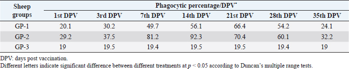 AbstractBackground: Foot-and-mouth disease (FMD) is one of the most highly contagious and economically significant diseases of cloven-hoofed animals worldwide. FMD virus (FMDV) is the cause of the disease. The virus has seven serological types, identified as; O, A, C, SAT1, SAT2, SAT3, and Asia1. The aim of this study enhancement of FMD vaccine immunogenicity is the unique way to control FMD in Egypt. Aim: Our research studied the effect of bee venom (BV) as simultaneously inoculated with the commercial vaccine on the immune response of experimentally vaccinated sheep in comparison with the inoculation of the vaccine alone through evaluation of the cellular and humoral immune response. Methods: Estimation of cellular immunity using phagocytic activity, phagocytic percentage, lymphocyte blastogenesis, interleukin-6 (IL-6), and interleukin-12 (IL-12) and estimation of humoral immunity using serum neutralization test (SNT) and enzyme-linked immunosorbent assay (ELISA). Result: Evaluation of the cellular immunity expressed in lymphocyte blastogenesis, phagocytic activity, phagocytic percentage, IL-6, and IL-12 showed higher levels in sheep vaccinated by the trivalent FMD vaccine (serotypes O pan Asia, A Iran O5, and SAT2/EGY/2012) with BV comparable to those induced by the vaccine alone. Following up the humoral immune response of vaccinated sheep revealed that FMDV antibodies serotypes O pan Asia, A Iran O5, and SAT2/EGY/2012 as measured by SNT and ELISA assay induced by FMD with BV were higher than those induced by inactivated FMD alone. Conclusion: The inoculation of BV with FMD vaccine simultaneously is of high benefit inducing high level of specific immunity which could be of long duration. Keywords: FMD, Bee venom, Cellular immunity, Humoral immunity. IntroductionFoot-and-mouth disease FMD is one of the most troubles viral diseases among livestock especially cloven-footed domestic and wild animals including cattle, buffaloes, sheep, goats, and pigs (Depa et al., 2012). It is a highly contagious viral disease among livestock in the world in the terms of economic impact and hindering on the trade of animals on national and international level and restriction of people movement which affect the tourism sector (Knight et al., 2017). FMD has the ability to cause great economic losses due to reduced milk yields, abortions, delayed conception, perinatal mortality, and premature culling and also due to hindering on the trade of animals both locally and internationally, and restrictions on the movement of people which affect the tourism sector (James and Rushton, 2002). During 2016–2019, different strains of FMD virus (FMDV) (O, A, SAT2) were circulated in Egypt that were detected from cattle and buffalo from various Egyptian governorates using enzyme-linked immunosorbent assay (ELISA) test. The three serotypes have different ratios for their expansion in Egypt where infected animals were infected with FMDV serotype O (79.3%), A (16.3%), and SAT2 (4.4%) (Ibrahim et al., 2018; El-Mayet et al., 2020). Controlling of FMD in susceptible animals such as cattle, sheep, and goats attained by vaccination through single vaccination is efficient in decreasing viral transmission between animals as a supplemental control measure (Orsel et al., 2007). In sheep, quadrivalent double emulsion (Montanide ISA206) vaccines were tested, and revealed that the oil adjuvant characterized by promotion of faster immune response than aluminum hydroxide gel vaccine. The neutralizing antibody titers in the animals were maintained at >3 log10 for 90 days (Patil et al., 2002). Serum neutralization test (SNT) and ELISA showed that the average protective FMD serum antibody titers in calves vaccinated with Montanide ISA 206 was begun at the 3rd week after vaccination and at the 10th week it achieved their higher level continuous protective level until 32nd week (Gamil, 2010). As a result of being humoral antibody titer does not give sufficient details about vaccine-stimulated immunity against FMD, a comparison among immunity conferred after vaccination and cell-mediated immune responses showed a positive relationship between viral neutralizing antibodies and cell-mediated immunity (Carr et al., 2013). Bee venom (BV) therapy (Apitherapy) has been used since ancient times (Kim et al., 2015). The venom has many scientific names as Apis Venenum Purum, Apitoxin, Bald-Faced Hornet, Bumblebee Venom, Honeybee Venom, Mixed Vespids, Pure BV, Wasp Venom, White-Faced Hornet, Yellow Hornet, and Yellow-Jacket Venom. Also, Apis mellifera (Honeybee); Bombus terrestis (Bumblebee); Vespula maculata (Hornet, Wasp) Family: Apidae; Vespidae (Meier and White, 1995). The major components of BV, melittin and phospholipase A2, acquire their predominance from their broad beneficial action. This work was designed to spot the light on honey BV as a natural material on the immune response of sheep to the trivalent FMD vaccine aiming to enhance the vaccine immunogenicity. Materials and MethodsFMD virusLocally isolated (FMDV) strains O PanAsia-2, A Iran O5, and SAT2/EGY/2012 of calves origin were typed and subtyped at the FMD Research Department (FMDRD), Veterinary Serum and Vaccine Research Institute (VSVRI), Abasia, Cairo and confirmed by the World Reference Laboratories, Pirbright, UK. These viral serotypes were in serological tests (SNT and ELISA). These viruses had the titer of 8.5, 8, and 7.0 TCID50/ml, respectively. FMD vaccineTrivalent FMD vaccine was supplied by VSVRI and used to vaccinate the experimental sheep under the effect of BV. Honey BVHoney BV of Apis mellifera lamarckii was obtained from Bee Keeping Department, Agriculture Research Center, Egypt. A stock solution of BV was prepared in sterile distilled water at 0.1% and sterilized by filtration through 0.2 μ pore-size filter as described previously (Kamal, 2016). Cell cultureBaby Hamster Kidney cell line (BHK21 clone13) was kindly supplied by the Animal Research Institute, Pirbright, U