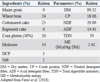 AbstractBackground: The dromedary camel plays a significant role in supporting the livelihood of pastoral and agropastoral systems, as well as a source of income for the national economy in arid regions. Aim: The current study was executed to check the comparative growth response in relation to hair mineral status in Marecha camel calves reared under an intensive management system and an extensive management system in Thal desert Punjab, Pakistan. Methods: Twelve male and female Camelus dromedarius calves of almost the same weight and age were divided into two groups of 6 each (3 male and 3 female). The calves of the first group were maintained at the Camel Breeding and Research Station, Rakh Mahni, in a semi-open housing system, while the second group was maintained in available housing under field conditions. Calves in the first group were fed concentrate at the rate of 1 kg/head/day along with gram straw (Cicer arientinum) ad libitum, while calves in the second group were allowed to graze/browse for 10 hours daily along with household refusals, including kitchen wastes. Water was provided twice a day. Impressum’s digital weighing scale was used for fortnightly weighing. Data collected on different parameters were subjected to statistical analysis with 2 × 2 factorial arrangements of treatments under a completely randomized design. Results: After the 120-day trial period, the mean body weight and average daily gain of male and female calves were significantly increased (p < 0.05) in IMS as 80.8 ± 2.7, 77.8 ± 2.7 kg and 0.67 ± 0.02, 0.65 ± 0.02 kg/days than EMS as 64.5 ± 2.6, 52.9 ± 2.6 kg and 0.54 ± 0.02, 0.44 ± 0.02 kg/days. Intake of crop residues (p < 0.05) was found to be 6.9 ± 0.45 and 6.4 ± 0.45 kg/days for male and female calves in IMS, respectively, and 3.5 ± 0.23 for male and female calves in EMS, respectively. The conversion index g/kg average daily intake was 97.1, 101.5 and 154.3, 125.7 for male and female calves in IMS and EMS, respectively. Regarding hair mineral status, Ca, Mg, Cu, Zn, Fe, and Mn concentrations were found to be significantly different (p < 0.05) among calf groups in IMS and EMS. Conclusion: This study indicates that wool analysis and management of weight gain in camel calves should be further explored to support increased meat supply in arid regions. Keywords: Camel, Growth, Management, System, Wool. IntroductionFood security is a challenging issue in the current days for developing countries due to the rapid increase of growth and limited resources, and exploration of new resources is the need of the hour. In this context, the indigenous sources are of keen interest. The camel is the future hope in this regard (Faraz et al., 2019a), which is an important source of food subsistence and income for pastorals, arid, and semiarid people (Faye, 2016). A camel can survive and produce in severe, hot, and hostile environments with equally good potential as other domestic animals in favorable environments. It is the best food source for dry areas, which nourishes the Bedouins, nomads, and pastoralists since centuries (Faraz, 2020a). Dromedary camel is one of the most important domestic animals in desert regions, as it is equipped to produce milk, meat, and wool at comparatively low costs and in extremely harsh conditions (Mustafa et al., 2015). A camel can utilize poor quality forages with much more efficiency, as it retains fiber in its fore stomach for as long as 70 hours (Von Engelhardt et al., 2006). It reutilizes urea for microbial protein synthesis and can use water economically for almost all metabolic functions. With 1.1 million heads (FAOSTAT, 2019; GOP, 2019-20), the camel population in Pakistan is enough to contribute to food security in the national economy and for diverse ecozones. However, for contributing to this, improvement of meat productivity in the camel herd is necessary. One way could be more intensive feeding to increase the growth of young camels. Mineral estimation in camel hair is a relatively newer concept in Pakistan. It could be an interesting tool for monitoring the general health status of camel calves (Faraz et al., 2019b). However, in Pakistan, camel hairs have not been taken up for mineral estimation so far. Hence, this study was planned to evaluate the growth potential related to hair mineral status in Marecha camel calves under an intensive management system (IMS) and an extensive management system (EMS) in its natural habitat. Materials and MethodsStudy area and meteorological conditionsThis study was conducted at the Camel Breeding and Research Station (CBRS), Rakh Mahni, Tahsil Mankera, District Bhakkar. The CBRS is located in Thal area between 31°10′ and 32°22′ north latitude and 70°47′ and 72° east longitude. Most of the area lies in the desert plain of Thal. This area is included in the agro-ecological zone-III A and B (sandy desert area), having narrow strips of sand ridges and dunes. The climate is arid to semiarid, subtropical, and continental and the mean monthly highest temperature goes up to 45.6°C, while in winter it goes from 5.5°C to 1.3°C. The mean annual rainfall in the region ranges from 150 to 350 mm, increasing from south to north (Rahim et al., 2011). Animal managementMarecha camel calves were maintained at the CBRS, Rakh Mahni, Tahsil Mankera, District Bhakkar, and the nearby field was used for this experiment to compare the efficiency of body weight gain and hair mineral status in camel calves raised under an IMS and an EMS. Twelve Marecha calves (Camelus dromedarius) aged around 330 ± 30 days and having group weight of 1350 and 1340 kg, respectively, were used in the 120-day trial, with additional 15 days adaptation period. Of these, six (three male and three female) belonged to the CBRS and were reared under IMS and the other six calves (three male and three female) were owned by private farmers and reared under EMS. The experiment was conducted during the months of March to 