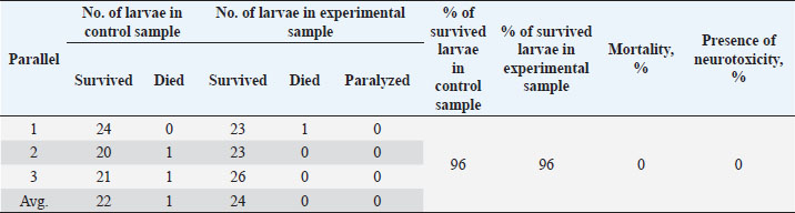 Table 6. Results of the analysis of the cytotoxic activity of the resulting substances (40%) 5 mg/ml.