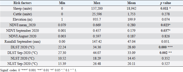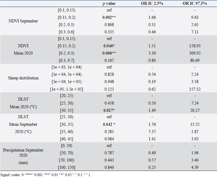 Table 2. Multivariate logistic regression analysis of risk factors associated with BT infected delegations.