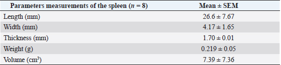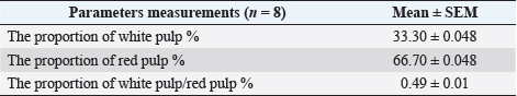 Table 2. The histomorphometric measurements of the spleen in the adult golden hamster.