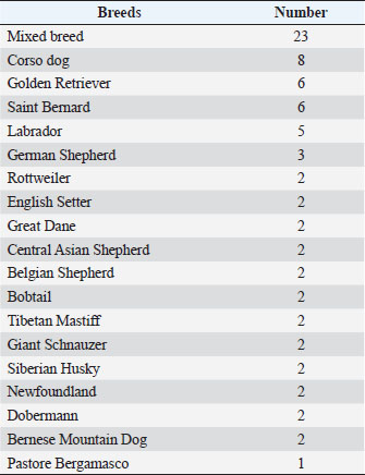 Table 2. Breeds of the dogs enrolled in our study.