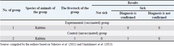 AbstractBackground: The annual increase in the number of camels entails a parallel increase in the incidence of trichophytosis, which poses a great threat to the health and life of both this species of animals and other organisms that contact and surround them. Aim: The aim of the study was to develop and establish the quality of vaccines inactivated by ultrasonic exposure for the prevention and treatment of trichophytosis in camels, and to compare them with chemically deactivated vaccines. Methods: The peculiarity of the technology of production of these vaccines was the use of an innovative method of inactivation of fungal strains by ultrasonic waves, which allowed to achieve high positive results in theory, and was subsequently confirmed in practice by immunizing sick and healthy animals. The first tests of the obtained vaccines were conducted in laboratory conditions on experimental rabbits. Results: The results of prophylactic and therapeutic vaccinations were one hundred percent positive, which made it possible to conduct further tests directly on camels of industrial farms, the expected result of which was also positively confirmed at the end of the research. Conclusion: As a result of this experiment, the effectiveness, stability, and safety of the manufactured vaccines were established, which made it possible to approve the regulatory and technical documentation and patent them as an innovative and effective development for the prevention and treatment of camel trichophytosis, which will reduce the growth of infection and further overcome the mass spread of the disease both among camels and among the surrounding organisms to which it is transmitted. Keywords: Monovaccine, Pentavalent vaccine, Trichophytosis, Trichophyton, Strain. IntroductionDermatomycoses is a group of diseases caused by pathogens—deuteromycetes (dermatophytes), which in turn are divided into three genera: Trichophyton—causing the disease known as trichomycosis (-phythia, -phytosis, ringworm); Microsporum—leading to microsporia (microsporosis) and Achorion—the clinical manifestation of which is favus (scabies). The most common cause of the lesion is Trichophyton. Among the different species, Trichophyton verrucosum and Trichophyton faviforme affect cattle and horses, whereas Trichophyton equinum and Trichophyton mentagrophytes (rarely) affect horses. On the other hand, carnivores (cats and dogs) and pigs are mostly affected by Trichophyton gypseum and T. mentagrophytes, while other species that are similar in morphology are detected much less frequently. However, the impact of the latter should not be underestimated, and it is important to pay attention to them, looking for methods of their suppression (Klymnyuk et al., 2004; Skibitskyi et al., 2012; Mohammadpour et al., 2020). According to the latest data, there are about 338,000 camels in the Republic of Kazakhstan, most of which are in Mangistau (41,500), Atyrau (17,300) and South Kazakhstan (16,900) regions. In addition to the number, there is also a great species diversity: compared to other countries of the world, where only two species of camels are common, in Kazakhstan there are about 32 existing hybrid species, which is due to two factors: firstly, the growing demand for camel milk, which is fermented to obtain the drink shubat and secondly, the fact that keeping camels in both large and small quantities is economically profitable for both small entrepreneurs and the country as a whole (Shoman, 2019). The complexity of the disease lies in the fact that the pathogen is easily transmitted by contact of a healthy animal with a sick one, and therefore the scale of spread is quite fast and large (Mel’nychuk and Hryshchenko, 2014; Yespembetov et al., 2019). There are two types of measures for combating camel trichophytosis: preventive measures and treatment measures. Preventive measures include sanitary and hygienic measures, climatic measures, and ecotrophological measures that ensure environmentally safe and rational nutrition. These measures are necessary because the causative agents of dermatomycoses are highly stable outside the body and can be transferred through various means, such as air, dust, water, household items, soil, and manure. However, these preventive measures do not guarantee full protection against infection with the pathogen. As a result, there is a threat of further spread of the disease, especially among young animals who are more sensitive to the disease and may experience a follicular or deep course of the disease (Gryshchenko and Lytvynenko, 2007; Vashchyk et al., 2020). In addition, preventive measures may not be effective during cold seasons when there is no solar radiation. The economic losses of the livestock sector due to this disease are also significant, not only in terms of animal mortality but also in terms of reduced growth, development, and productivity. On the other hand, treatment measures are needed to address the disease once it has occurred. Similarly, treatment, which is most often conducted by the use of antibiotics internally, does not always help in the treatment of pathogenic fungi with high contagiousness (Saiduldin, 2009; Levinson, 2014; Parker et al., 2021; Vakhidova, 2021; McVey et al., 2022). Although the issue of external treatment of trichophytosis in animals has been more or less solved by the use of ointments and solutions for the treatment of dermatomycotic skin lesions, as well as disinfectants to prevent the disease (Romich and Wagner, 2020; Mohamed et al., 2022). However, the annually increasing number of camels further complicates the situation and requires urgent attention and action, in the form of the creation and production of a safe and effective vaccine as the most effective way to combat trichophytosis, which is being worked on by scientists in Kazakhstan and other countries of the world, and which is also the purpose of this study. The aim of the study was to develop and establis