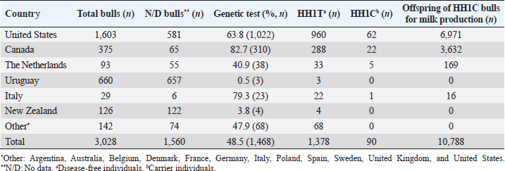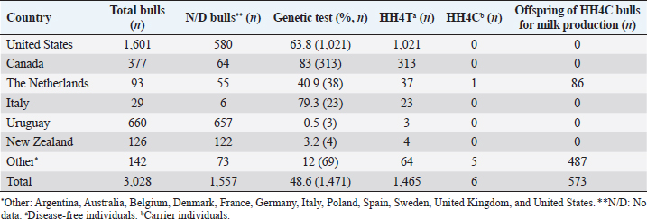 Table 3. Genetic status for the HH4 haplotype of bulls used as sires in Uruguayan dairy genetic evaluation systems until 2021 according to country of origin.