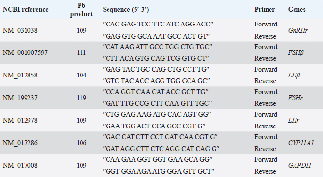 The concentrations of LH, FSH, and testosterone in the Pb plus KAF group were significantly (p < 0.05) elevated compared to that in the Pb plus vitamin E and Pb groups and declined significantly (p < 0.05) relative to the control group (Fig. 2). As well as, the concentrations of these hormones in the Pb plus vitamin E group showed a significant increment compared to the Pb group and a significant decrement compared to the control group, kaempferol plus Pb group, and kaempferol and vitamin E with Pb group (Fig. 2). Effects of kaempferol, vitamin E, and lead acetate on fold change of pituitary FSHβ, LHβ, and GnRHr in male ratsThe fold changes levels of hypophyseal GnRHr, LHβ, and FSHβ expression were significantly (p < 0.05) upregulated in Pb-treated with KAF plus vitamin E male rats compared to that in other experimental groups. Whereas the exposure to lead acetate, the Pb group caused a significant (p < 0.05) downregulation and suppression of the gene expression (the fold changes) of pituitary GnRHr, FSHβ, and LHβ in comparison with other treatment groups Figure 3.