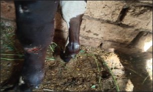 Fig. 1. Presence of abscess on the hind limb of an affected cow.
