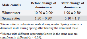 Table 3. The mean cortisol levels (ug%) with a change of dominance(1) in male camels (n=10).