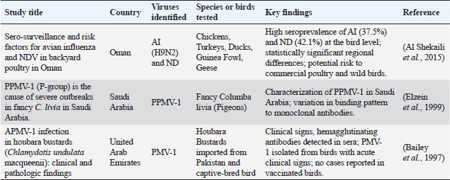 ABSTRACTNewcastle disease (ND) is a tremendously contagious avian infection with extensive monetary ramifications for the chicken zone. To reduce the effect of ND on the Saudi rooster enterprise, our analysis emphasizes the necessity of genotype-particular vaccinations, elevated surveillance, public recognition campaigns, and stepped-forward biosecurity. Data show that one-of-a-kind bird species, outdoor flocks, and nearby differences in susceptibility are all vulnerable. The pathogenesis consists of tropism in the respiratory and gastrointestinal structures and some genotypes boom virulence. Laboratory diagnostics use reverse transcription-polymerase chain reaction, sequencing, and serotyping among different strategies. Vital records are supplied through immune responses and serological trying out. Vaccination campaigns, biosecurity protocols, and emergency preparedness are all covered in prevention and manipulation techniques. Notably, co-circulating genotypes and disparities in immunization regulations worry Saudi Arabia. The effect of ND in Saudi Arabia is tested in this paper, with precise attention paid to immunological reaction, pathogenesis, susceptibility elements, laboratory analysis, and preventative and manipulation measures. Saudi Arabia can shield its bird region and beef up its defences against Newcastle’s ailment, enforcing those hints into its policies. Keywords: Avian paramyxovirus, Newcastle disease virus, Pathology, Diagnosis, Vaccination. IntroductionNewcastle disease (ND), sometimes called avian ND, is a highly contagious virus that poses a significant threat to the global poultry industry (Alexander and Senne, 2003). ND poses a severe threat to poultry populations due to its ability to spread rapidly and economically in the considerable loss caused by the virus (Leslie, 2000; Alders, 2014). Although the virus affects a variety of birds, chickens are most affected, so the poultry industry should prioritize (Miller and Torchetti, 2014). Like many other countries, Saudi Arabia recognized the importance of ND control and management roles. Newcastle disease virus (NDV), commonly known as paramyxovirus-1 (PMV-1), is a common virus in the genus Avulavirus that causes epidemics in poultry and other poultry species and belongs to the family Paramyxoviridae (https://talk.ictvonline.org/taxonomy/) (Jeong et al., 2018). High levels (velogenic), including the most virulent velogenic strains, which generally cause high mortality. The diversity of NDV strains highlights the importance of better understanding the virus to effectively limit its impact on poultry populations (Brown and Bevins, 2017). Direct contact between susceptible and diseased birds is the primary method of transmission of ND. Contaminated clothes, water, feed, and equipment are other possible transmission routes. Furthermore, farmed poultry might contract the virus from wild birds that act as carriers (Miller et al., 2013; Suarez et al., 2020). ND can present with a range of clinical manifestations, including signs of the neurological, respiratory, and digestive systems, depending on the virus’s virulence. High death rates characterize severe cases despite the wide range of clinical symptom presentation. ND must be promptly diagnosed and treated with the proper management techniques, including immunization, isolating afflicted birds, and strict biosecurity measures. It is advised to consult a veterinarian or the local animal health authorities in cases where ND is suspected of receiving an accurate diagnosis and instructions on how to put control measures in place (Brown and Bevins, 2017). Newcastle disease has significantly affected Saudi Arabia’s commercial chicken production. Poultry producers have experienced significant financial losses due to outbreaks, decreased egg production and higher death rates (Almubarak, 2019). These ramifications influence food security and the accessibility of poultry goods on the local market in addition to the poultry industry’s financial viability. To slow the spread of ND, the Kingdom of Saudi Arabia has combined vaccination campaigns, quarantine guidelines, and biosecurity measures. Notwithstanding these endeavours, certain obstacles endure, such as the possibility of the virus evolving into a more pathogenic variant. Monitoring and surveillance are necessary to identify and contain future epidemics quickly. The Kingdom of Saudi Arabia works with regional and international organizations to exchange best practices and insights in managing ND. Given that wild and farmed birds can spread NDV, it is essential to comprehend the dynamics of the virus in the area. Saudi Arabia’s poultry sector, especially in the Eastern Region, has grown significantly in recent years, producing billions of eggs and millions of broiler birds. An investigation into the function of NDV in this context was conducted in the Eastern Region of Saudi Arabia between 2012 and 2014. In order to provide light on the dynamics of the disease in the area, this survey attempted to describe the circulating NDV strains (Almubarak, 2019). It is crucial to comprehend the variety of NDV strains in Saudi Arabia and how they affect the chicken sector. This information can help manage and prevent Newcastle disease in chicken populations by informing vaccination plans, biosecurity precautions, and response procedures. We examine the survey’s findings and debates in the following parts, providing insight into the NDV strains that are now circulating in Saudi Arabia’s Eastern Region. Overview of the diseaseBeyond just chickens, ND is a highly contagious viral virus that affects many different species of birds. NDV is categorized as an orthoavulavirus, and one of its noteworthy traits is that it may infect various bird species (Kaleta and Baldauf, 1988). This makes it a severe worry regarding poultry’s health and the preservation of birds. The wide range of avian species that are infected with NDV includes bo