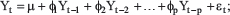 where yt−1 and yt are lagged original series and original series, respectively. Moving Average process of order (q) is represented as follows: