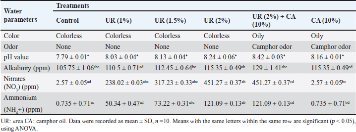 Table 4. Water physico-chemical properties (mean ± SD) of control and the exposed ones.