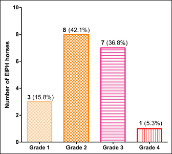 Fig. 2. The number and percentage of horses with EIPH’s degree in horses suffering from exercise intolerance.
