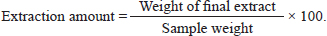 Analysis of organic extractAccording to Tsikolia et al. (2022), The organic extract was examined using a Chromatec-Crystal 5,000 gas chromatography–mass spectrometry system, which is equipped with a quadruple mass spectrometer. The column used was BP-5MS (5% Phenyl Polysilphenylene-siloxane), with dimensions of 30 m × 250 µm and a thickness of 0.25 µm. The temperatures set were as follows: injector at 300°C, ion source at 280°C, selective mass detector at 150°C, and interface at 300°C. The carrier gas used was helium with a purity of 99.9999%. The flow velocity was set at 30.000 cm/second. The syringe volume was 1.0 µl of oil diluted in n-hexane (1/100; V/V). The split ratio was 1:25. The oven temperature was initially set at 50°C for 5.5 minutes, then increased at a rate of 10°C/minute to 290°C, and finally held at 300°C for 5 minutes (Post Run). The total duration of the analysis was 35.50 minutes. The chemical compounds of the extract were identified by comparing their mass spectra with a standard sample in the analyzer library (National Institute of Standards and Technology; NIST). The retention index (RI) of all compounds was determined using the Kovats method, with a homologous series of n-alkanes C8–C22 as the standard. These were then compared with the standards reported in the literature. The RI was computed using: