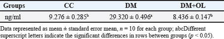 Table 2. Effect of diabetes and olive leaves extract on GSH (μg/ml) in brain tissue of adult male rats.