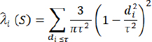 where: i=1,…,n are the input points. di is the distance between the point s and the observed event in location, si and τ is the radius centered on s. The formula to calculate the bandwidth was as follows (ESRI, 2014):