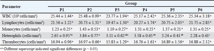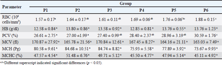 Table 2. Mean and standard deviation of hematology of ranchu goldfish.