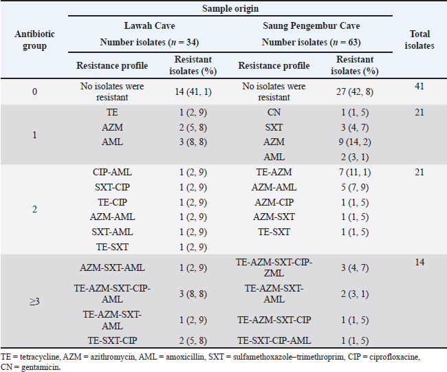 Table 3. Results of antibiotic sensitivity test of E. coli isolates from Saung Pengembur Cave and Lawah Cave, West Nusa Tenggara.