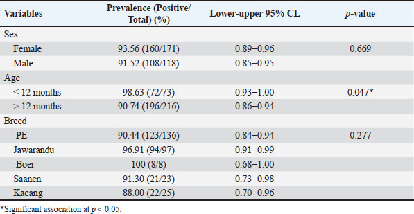 Table 2. Univariate analysis of the risk factors associated with Eimeria infection in goats from Java Island.