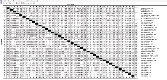 Fig. 7. DNASTAR’s calculation of each pair’s gene sequence difference and similarity for S. aureus GenBank, and the NCBI accession number is indicated by the designation in parenthesis. Adhesion-encoding genes such as clfA and clfB genes were characteristic in S. aureus isolates from milk samples in the present study; these genes are important in the mastitis-associated udder lesions, the global investigations reported the detection of high percentages of the virulence genes such as clfA and clfB. Acosta et al. (2018) found the percentage ratio of clfA and clfB detected in S. aureus isolated from cow and goat milk in Brazil were 76%–76.67%. In Iran, the majority of S. aureus isolates from cow’s milk contained the clfA gene of 84%–65.3% of S. aureus isolates had the clfB genes (Momtaz et al., 2010). Studies appeared that the S. aureus isolated from cow mastitis infections have the clfA gene was 19%–100% of cases, while the clfB gene was detected in 91.8%–92.9% of S. aureus isolates (Momtaz et al., 2010; Klein et al., 2012). Our study showed that the coa gene was detected in all S. aureus isolates 100% of bacterial isolation, the following gene plays an important role in the pathogenicity of this bacterium, particularly in sheep mastitis cases. In India, Javid et al. (2018) found that 64.1% of coagulase—positive S. aureus isolated from sheep milk samples carried the coa gene with different genotypes, including 514 bp, 595 bp, 757 bp, and 802 bp, while another investigation revealed that all S. aureus isolates had the coa gene with a molecular weight of 580 bp (Stephan et al., 2001; Altaey, 2024). ConclusionStaphylococcus aureus and MRSA drive a significant global challenge to animal and human health and present an impediment to producing milk and its products. The elevated incidence of S. aureus infections can be attributed to inadequate husbandry practices, insufficient adherence to basic hygiene protocols, and the random use of antibiotics. Additionally, there is genetic variability in the virulence factors of S. aureus isolated from sheep milk based on the different geographical regions worldwide. Continued research and surveillance are essential to monitor and evaluate MRSA strains and to develop effective strategies for managing and attenuating their impact on both public health and dairy manufacturing. AcknowledgmentWe want to convey our appreciation to the College of Veterinary Medicine at the University of Mosul for furnishing the essential resources needed to carry out this research. Conflict of interestThe author declares no conflicts of interest in the preparation or analysis of this manuscript. FundingThe research is fully self-funded by the authors. Authors’ contributionOmar HS and Alaa SA conceived the idea for this project. Ayman HT performed DNA isolation and PCR reactions. All authors contributed to writing the initial draft and collaboratively revised and organized the final version of the research. Data availabilityThe data generated in this study are included in the article. ReferencesAcosta, A.C., Oliveira, P.R.F., Albuquerque, L., Silva, I.F., Medeiros, E.S., Costa, M.M., Pinheiro Junior, J.W. and Mota, R.A., 2018. Frequency of Staphylococcus aureus virulence genes in milk of cows and goats with mastitis. Pesq. Vet. Brasil. 38, 2029–2036. https://doi.org/10.1590/1678-5150-PVB-5786 Ahmed, I.M., Al-Sanjary, R.A. and Alkazaly, H.H., 2020. Detection of Mycobacterium paratuberculosis in raw cow’s milk using polymerase chain reaction (PCR) technique. Iraqi J. Vet. Sci. 34(1), 83–86. Available via https://www.iasj.net/iasj/download/b1ec70a657f79f08 Akgul, O., Bora, G. and GUDUCUOĞLU, H., 2021. Investigation of the gene carriage rates for Staphylococcus aureus, mecA, vanA and nuc genes in the nasal and milk specimens from the sheep caretakers with sheep. Large Anim. Rev. 27(5), 259–268. Altaey, O.Y., Hasan, A.A. and Alhaaik, A.G. 2025. Early-life development of spleen in white rabbit (Oryctolagus cuniculus): a morphometric and histochemical analysis. Vet. Integr. Sci. 23(1), 1–13. https://doi.org/10.12982/VIS.2025.012 Argudín, M.Á., Mendoza, M.C. and Rodicio, M.R., 2010. Food poisoning and Staphylococcus aureus enterotoxins. Toxins, 2(7), 1751–1773. http://dx.doi.org/10.1016/j.fm.2016.10.02010.3390/toxins2071751 Azzi, O., Lai, F., Tennah, S., Menoueri, M.N., Achek, R., Azara, E. and Tola, S., 2020. Spa-typing and antimicrobial susceptibility of Staphylococcus aureus isolated from clinical sheep mastitis in Médéa province, Algeria. Small Ruminant Res. 192, 106168. http://dx.doi.org/10.1016/j.smallrumres.2020.106168 Barrero-Domínguez, B., Luque, I., Galán-Relaño, Á., Vega-Pla, J.L., Huerta, B., Román, F. and Astorga, R.J., 2019. Antimicrobial resistance and distribution of Staphylococcus spp. pulsotypes isolated from goat and sheep bulk tank milk in Southern Spain. Foodborne Pathogens Dis. 16(10), 723–730. https://doi.org/10.1089/fpd.2018.2593 Basanisi, M.G., La Bella, G., Nobili, G., Franconieri, I. and La Salandra, G., 2017. Genotyping of methicillin-resistant Staphylococcus aureus (MRSA) isolated from milk and dairy products in South Italy. Food Microbiol. 62, 141–146. http://dx.doi.org/10.1016/j.fm.2016.10.020 Bergonier, D., De Crémoux, R., Rupp, R., Lagriffoul, G. and Berthelot, X., 2003. Mastitis of dairy small ruminants. Vet. Res. 34(5), 689–716. https://doi.org/10.1051/vetres:2003030 De Centorbi, O.P., de Cuadrado, A.M., Alcaraz, L.E., Laciar, A.L. and de Milán, M.C. 1992. Prevalence of Staphylococcus aureus isolated from subclinical bovine mastitis in dairies of the city of San Luis. Revis. Argentin. Microbiol. 24(2), 73–80. Graber, H.U., Casey, M.G., Naskova, J., Steiner, A. and Schaeren, W. 2007. Development of a highly sensitive and specific assay to detect Staphylococcus aureus in bovine mastitic milk. J. Dairy. Sci, 90(10), 4661–4669. http://dx.doi.org/10.3168/jds.2006-902 Javid, F., Taku, A., Bhat, M.A., Badroo,