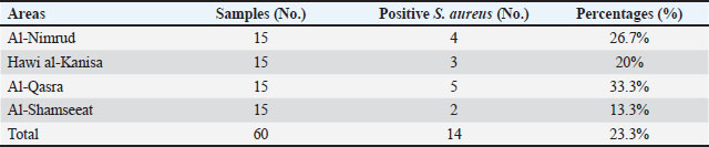 Table 2. The number of samples and percentage of positive S. aureus isolated from sheep milk.