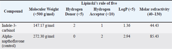 Table 2. Predicted drug-likeness of the compounds of interest and control.