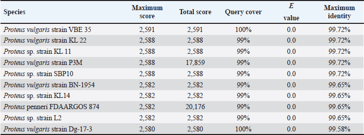 Table 3. BLAST results against NCBI database of HT1 isolate.