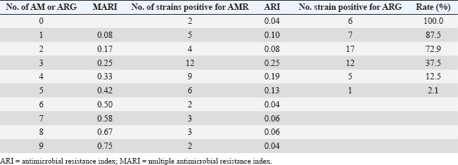 Table 5. Number of AMRs and ARGs in the S. aureus isolates.