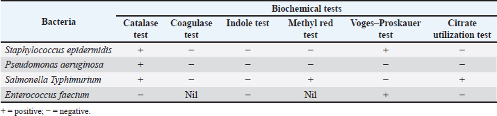 Fig. 1. Number of single and mixed infections of S. epidermidis, P. aeruginosa, S. enterica serovar Typhimurium, and E. faecium cases. Antibacterial activity of ZnONPs against S. epidermidis, P. aeruginosa, S. Typhimurium, and E. faeciumIn the current investigation, Figure 4 illustrated that ZnO-NPs (A) showed higher antibacterial activities against S. Typhimurium and S. epidermidis with Max zone of inhibition 3 and 2.5 mm, respectively, followed by P. aeruginosa with maximum zone of inhibition 1.4 mm. On the other hand, it had no effect against Streptococcus faecium. Concerning ZnO-NPs (B), they have the highest antibacterial effect against S. Typhimurium with a maximum inhibition zone of 2 mm (bacteriostatic effect) followed by S. epidermidis with a maximum inhibition zone of 1.6 mm. On the other hand, P. aeruginosa and S. faecium showed no effect on their growth. Regarding the concentration of ZnO-NPs (C), a higher antibacterial effect against S. Typhimurium with Max zone of inhibition of 1.8 mm was presented, followed by S. epidermidis with Max zone of 1.5 mm. However, it showed no effect against P. aeruginosa and S. faecium (E. faecium). MBC and MIC of capped, non-capped, and synthesized ZnO-NPs nanoparticles via combustion reaction against S. epidermidis, P. aeruginosa, S. Typhimurium, and E. faeciumTable 4 illustrates how the bactericidal and bacteriostatic effects of nano-ZnO suspensions were assessed by measuring the MBC and MIC values against the pathogens under investigation, respectively. Three nano-ZnO solutions ranging in concentration from 1 to 50 mg/ml were examined in this instance. The results indicated that MBC (S. epidermidis) was completely suppressed at doses of 1 to 10 mg/ml of nano-ZnO. The nano-ZnO solution exhibited inhibitory kinetics (MIC) against S. epidermidis at concentrations <1–5 mg/ml. According to the suspension (No. 1), MBC was detected at a concentration of 30 mg/ml and the MIC was 20 mg/ml for P. aeruginosa. When it came to S. Typhimurium, the MIC was found at a concentration of 5 mg/ml, whereas MBC was measured at 10 mg/ ml. Finally, the nano-ZnO suspension (No. 1) showed MBC activity against E. faecium at a concentration of 30 mg/ml, and MIC activity at a concentration of 2 mg/ ml. DiscussionMilk is one of the most plentiful dietary sources of vital minerals and nutritional components that are physiologically active and necessary for the function of the cardiovascular and immune systems (Byomi et al., 2018, 2019b; Yang et al., 2020; Eissa and Harb, 2023; Eissa, 2024c; Salman et al., 2024a). Perhaps because cattle mastitis has not been a particularly vocal killer, it has been a chronic infection that has been irksomely persistent since ancient times. Due to complicated infections and the development of bacteria that spread to other locations, it has been demonstrated to have a high rate of death and morbidity (Mazzariol et al., 2018). By overcoming multiple hierarchical barriers, the germs that cause mastitis may go undetected and infiltrate our lives. As the line between people and animals gets less clear, it is easier for zoonotic diseases to spread, even though it should not be possible in this case (McDaniel et al., 2014; Byomi et al., 2018, 2019a, b; Zin Eldin et al., 2023; Bedair et al., 2024; Eissa, 2024a,b,c; Elgendy et al., 2024; Elsobky et al., 2024; Salman et al., 2024a,b; Zain Eldeen et al., 2024; Ramzy et al., 2025). Along with pathogenic intervention being the main cause of infection, breast dysbiosis is caused by a change in the ecology of the mammary glands, with fewer commensals and more native pathobionts (Catozzi et al., 2019). Table 3. Occurrence of S. epidermidis, P. aeruginosa, S. enterica, serovar Typhimurium, and E. faecium in relation to demographic data of the examined cattle.