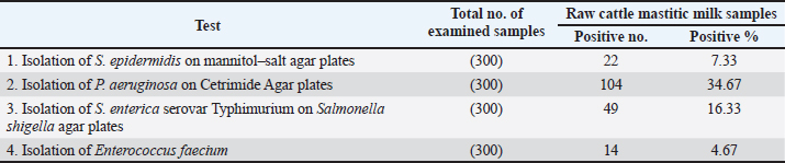 Table 2. Occurrence of zoonotic bacteria with different transmission patterns isolated from raw cattle mastitic milk samples.