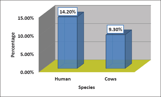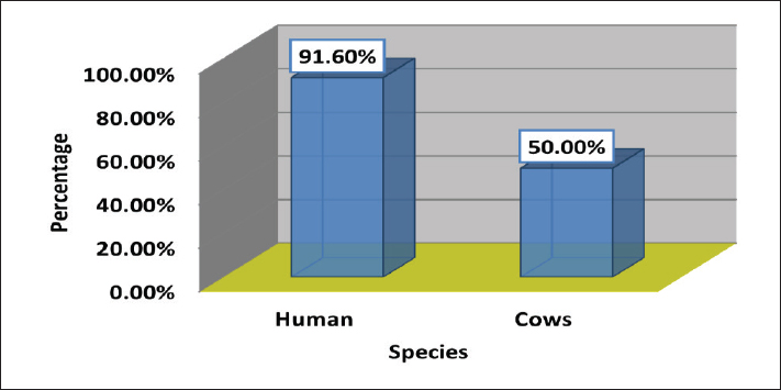 Fig. 2. Percentage of S. aureus isolates in human and cattle urine samples.