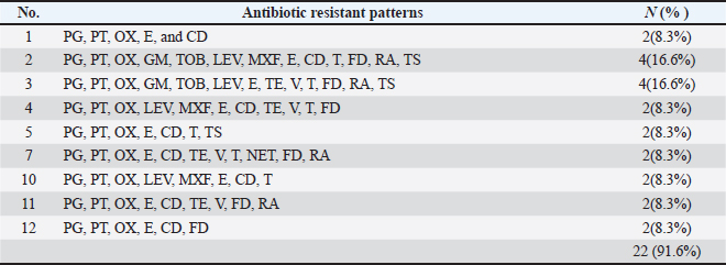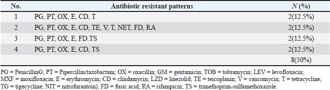 Table 3. Table 3. MDR Patterns of S. aureus isolated from cattle with UTI.