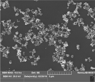 Fig. 1. SEM image of ZnO NPs, show small particles which observed to be bit agglomerated, particles, with diameters between 5–50 nm. Table 1. Components, energy content (kcal/kg dry matter) and crude protein percentage (%) of the feed used in the experiment.