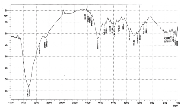 Fig. 2. FTIR spectra of chitosan nanoparticles, showing the main functional groups and changes in the chemical structure resulting from transformation into the nanoparticles.