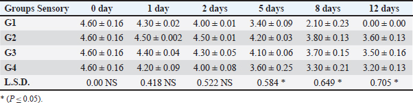 Table 4. Sensory result of mutton meat at different refrigerator temperatures.