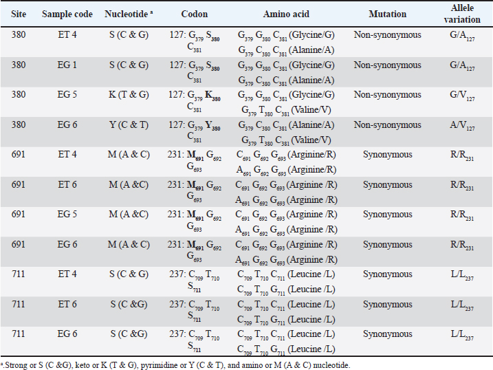 Table 2. SNP mutations in thin-tailed (ET) and fat-tailed (EG) Indonesian sheep.