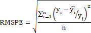 The predictive capacity of the model was estimated by calculating the mean square root percentage of error. A lower RMSPE indicated a better model fit.