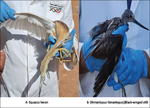 Fig. 2. Photographs of two types of wild migratory birds. (A): Squacco heron in Tobruk (Al Tamimi Coast). (B): Black-winged stilt (H. Himantopus) in the city of Benghazi (Sabkhat Julyanah).