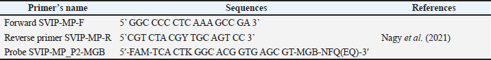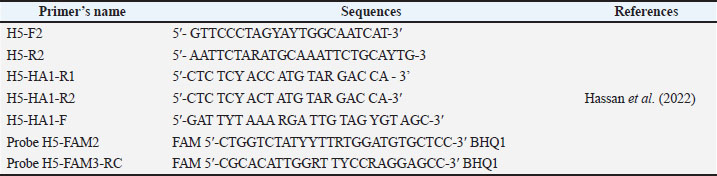 Table 3. The primers and probe sequences used to detect the H5 influenza subtype in this study.