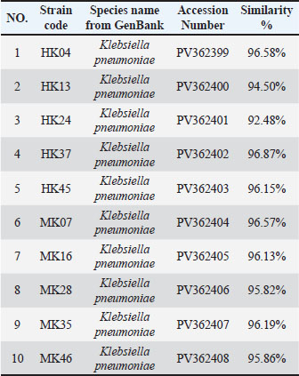 Table 2. Occurrence of antibiotic-resistant genes among K. pneumoniae isolates.