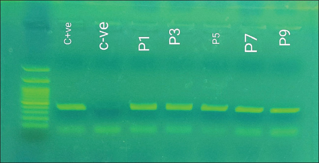 Fig. 8. Gel electrophoresis of the PCR product of FMDV harvested from BHK-S. DiscussionThe development of efficient production systems for FMDV vaccines remains a critical challenge in veterinary medicine and biotechnology, particularly in resource-limited settings. Our study provides comprehensive evidence that suspension-adapted BHK cells (BHK-S) offer significant advantages for FMDV production, with implications for industrial-scale vaccine manufacturing. A key contribution of this work is the successful implementation of a cost-effective suspension adaptation strategy using a rolling system with gradual speed increment (20–60 rpm over 10 passages). This methodological innovation addresses a critical need in developing countries, where access to sophisticated bioreactor systems may be limited or cost-prohibitive. Being able to adapt adherent cells to grow in suspension is a major step forward for vaccine production. When companies can develop their own suspension cell lines in-house, they become less reliant on buying pre-adapted cells from outside suppliers—which are often expensive and can come with risks such as contamination, cell death, or unexpected shortages. These issues can slow production and increase costs. However, by successfully transitioning adherent cells into stable suspension cultures, manufacturers can scale up the process more easily and consistently, making vaccine development and production more efficient and sustainable. The rolling adaptation method achieved performance metrics comparable to those of conventional techniques, with cells maintaining viability above 85% and achieving viral titers of 109.5 TCID50/ml. This approach allows the growth adaptation of each cell line from the adherent state to the growth state to be applied and used at a manufacturing scale. Thus, it is particularly valuable for vaccine manufacturing facilities in resource-constrained settings. Furthermore, systematic analysis of this production platform revealed several key advances, including enhanced viral yield, genetic stability, and scalability. The success of this method demonstrates that effective suspension adaptation can be achieved without sophisticated equipment, potentially democratizing access to efficient FMDV vaccine production technology. These findings align with recent studies emphasizing the importance of developing cost-effective production strategies for emerging economies and underscoring the broader relevance and impact of this work in addressing global vaccine production challenges.