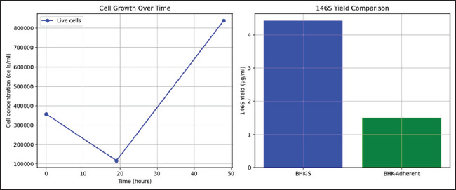 Fig. 9. Shows the differences in cell growth over 48 hour in the bioreactor and 146s between BHK-adherent and BHK-S.