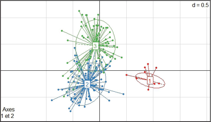 Fig. 5. Graphic representation of the three identified clusters. Table 4. Characteristics of the identified three groups of farmers.