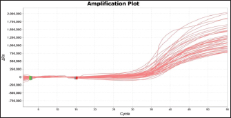 Fig. 3. Amplification plot of the 16S rRNA gene of Mycoplasma haemofelis positive samples.