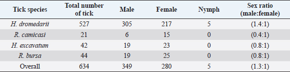 Table 2. Sex ratio for each tick species in Tarhuna between August 2015 and May 2016.