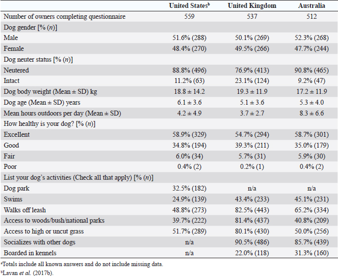 Table 2. Owner descriptions of their dogs in US, UK, and Australiaa.
