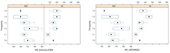 Fig. 1. Post hoc analysis. Linear mixed model fit by REML showing that in dogs of group NO, obtained and calculated HR tend to decrease during the first-year monitoring (p=0.01 and 0.02, respectively), while they tend to increase in the SI group. NO=group of dogs that do not show spikes in digoxinemia, SI=group of dogs showing spikes. The linear regression analysis on the whole data set (from 91 follow up on 17 dogs), documents a mild positive correlation between digoxinemia and digoxin dose (n=46, r=0.33, 95% CI: −0.670, −0.166, p-value=0.023) and a discrete negative correlation between digoxinemia and ECG obtained HR (n=40, r=−0.45, 95% CI: −0.559, −0.020, p-value=0.003) (Fig. 3). DiscussionIn the prospective study, all included dogs were large breed dogs with a DCM phenotype. Two purebred dogs had a documented familial predisposition for DCM (Newfoundland and German Shepherd), in the other cases the dilated hypokinetic picture may be the consequence of the arrhythmia rather than the predisposing factor, as suggested from experimental pacing models (Armstrong et al., 1986; Wilson et al., 1987). All dogs had shown AF clinical signs before treatment starting, with ascites as a constant finding. Serial monitoring began from the time the final digoxin dosage was reached after the required adjustments and AF showed clinical remission. It is known that the suggested starting dosage of digoxin is 0.22 mg/m2 or 0.005 mg/kg/BID, depending on dog’s size, but due to the different individual pharmacokinetics and the reduced safety margin, it may require adjustments based on the serum digoxin concentration. A target steady-state plasma concentration (8 hours post pill) of 0.8–1.5 ng/ml and 0.6–1.0 ng/ml has been recently suggested (Keene et al., 2019; Pedro et al., 2020b), in particular to avoid the pro-arrhythmic effect due to the increase in intracellular calcium levels. It has been further suggested that digoxin dosing should be tailored to a tolerable serum level (without signs of toxicity), not by effect on HR (Keene et al., 2019; Pedro et al., 2020b). In the past higher values till 2.5 ng/ml were reported as reference range (Pedersoli, 1978; Fox et al., 1999; Couto and Nelson, 2015). Anyway, on authors’ knowledge, no scientific data are available in the literature to define a univocal reference range for digoxinemia in dogs, in particular during long term monitoring. Once defined, the digoxin dose was no more changed until the end of the study. In all dogs and in all follow-ups, HRs remained consistently below 150 bpm in the evaluation obtained from the ECGs and no clinical relapses where registered. It has been reported that an HR lower than 140 bpm for 60% of the daytime in Holter monitoring or an average HR of 150 bpm on the ECG are considered indicators of AF adequate control (Pariaut, 2017). No posology changes in the other scheduled treatments were required. Table 2. Signaling, underlying cardiac disease, clinical signs and electrocardiographic diagnosis at D0 in the 17 dogs included in the retrospective study.