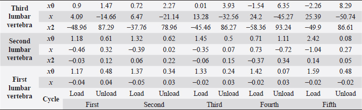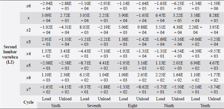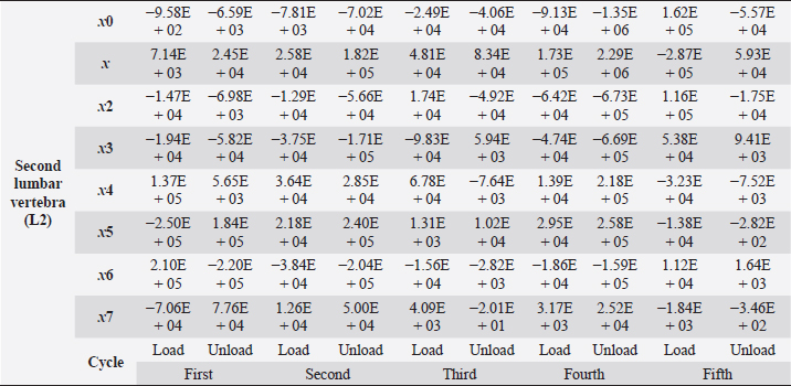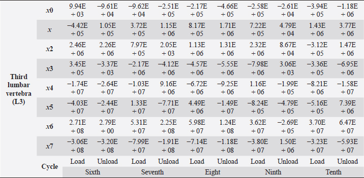 Table 5. Second lumbar vertebra coefficients using seventh-order polynomials.
