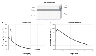 AbstractBackground: Accurate dose assessment during animal radiotherapy is beneficial for veterinary medicine and medical education. Aim: To visualize the radiation treatment distribution of orthovoltage X-ray equipment in clinical practice using Monte Carlo simulations and create a dog skull water phantom for animal-specific radiotherapy. Methods: EGSnrc-based BEAMnrc and DOSXYZnrc codes were used to simulate orthovoltage dose distributions. At 10, 20, 30, 40, 50, and 80 mm in a water phantom, the depth dose was measured with waterproof Farmer dosimetry chambers, and the diagonal off-axis ratio was measured with Gafchromic EBT3 film to simulate orthovoltage dose distributions. Energy differences between orthovoltage and linear accelerated radiotherapy were assessed with a heterogeneous bone and tissue virtual phantom. The animal-specific phantom for radiotherapy quality assurance (QA) was created from CT scans of a dog and printed with a three-dimensional printer using polyamide 12 nylon, with insertion points for dosimetry chambers and Gafchromic EBT3 film. Results: Monte Carlo simulated and measured dose distributions differed by no more than 2.0% along the central axis up to a depth of 80 mm. The anode heel effect occurred in shallow areas. The orthovoltage radiotherapy percentage depth dose in bone was >40%. Build-up was >40%, with build-down after bone exit, whereas linear accelerator radiotherapy absorption changed little in the bone. A highly water-impermeable, animal-specific dog skull water phantom could be created to evaluate dose distribution. Conclusion: Animal-specific water phantoms and Monte Carlo simulated pre-treatment radiotherapy are useful QA for orthovoltage radiotherapy and yield a visually familiar phantom that will be useful for veterinary medical education. Keywords: Orthovoltage, Animal radiotherapy, Heel effect, Water animal phantom, Animal specific radiotherapy quality assurance. IntroductionSmall animal radiotherapy requires high treatment accuracy and animal-specific radiotherapy quality assurance (QA) (Iseri et al., 2022). Dose accuracy in animal models has been studied as a way to estimate the radiation response of tumors and normal tissues (Verhaegen et al., 2018). Kilovoltage X-rays delivered via orthovoltage equipment (Philips Medical Systems, Best, The Netherlands) for small animal radiotherapy are widely used in facilities ranging from clinics to university hospitals (Pampena et al., 2016; Seo et al., 2018). The use of linear accelerators for animal radiotherapy has increased in some facilities but remains rare due to high costs and large machine sizes (Seo et al., 2018). The absorbed dose during orthovoltage radiotherapy may be measured using water procedures (Ma et al., 2001) to ensure that the prescribed doses for soft tissue are accurate. However, differences in tissue density throughout the body (e.g., lung and bone) make it difficult to predict dose distribution in clinical use accurately. Equipment and patient-specific QA are important for identifying discrepancies between calculated and delivered radiation doses and assessing algorithm-based management of heterogeneities and other factors (Miften et al., 2018; Tanabe et al., 2020). Orthovoltage radiotherapy is delivered in high prescription doses, similar to linear accelerator radiotherapy (Medina et al., 2008; Pampena et al., 2016), but manufacturers generally do not sell radiation treatment planning systems. Monte Carlo simulation is an established method for estimating radiation treatment dose (Andreo, 1991; Onizuka et al., 2018; Iseri et al., 2023), including for orthovoltage radiotherapy dose distribution (Abbas et al., 2014). If the orthovoltage dose distribution can be understood, this technique may be an effective tool for selecting either orthovoltage or linear accelerator radiotherapy when considering dosing around radiosensitive organs. Ye, there is little time to teach about radiation therapy in veterinary education. Using visual simulation images and animal-specific verification devices can aid in our understanding of the physical events of radiation in a short time (Azer and Azer, 2016). Three-dimensional (3D) printers are widely used in radiotherapy research to create phantoms from processed CT images (Ji et al., 2017; Kamomae et al., 2017). The accuracy of 3D printers depends on the printing materials and image processing methods. The accuracy required for QA verification is within 1 mm (Miften et al., 2018), and engineering technology and knowledge are essential for creating high-quality phantoms. To the best of our knowledge, there are no prior reports on using a 3D-printed dog skull water phantom for pre-treatment QA of orthovoltage radiotherapy dose. Therefore, we investigated the ability of Monte Carlo simulations and physical phantom measurements to predict dose distributions with conventional orthovoltage X-ray equipment and enable the creation of a dog skull water phantom that could be used for QA. Additionally, the suitability of orthovoltage radiotherapy was compared with accelerated linear radiotherapy. Materials and MethodsThis study used a self-contained industrial orthovoltage X-ray system (output voltage range 32–320 kV, tube current range 3–30 mA; Philips Medical Systems, Best, The Netherlands) generally used for small animal radiotherapy. The unit has several applicator cones, a field size of φ4.0 cm, and a treatment distance of 50 cm. Monte Carlo simulation for orthovoltage radiotherapyMonte Carlo orthovoltage dose distributions were simulated with EGSnrc-based BEAMnrc and DOSXYZnrc codes using MATLAB from the NRCC group (Kawrakow, 2000; Kawrakow et al., 2011). The orthovoltage apparatus consists of a target, X-ray tube window, primary collimator, and mirror. The geometric dimensions and materials of each component module were provided by vendors and obtained from reference tables (Knöös et al., 2007; Abbas et al., 2014). The incident electron energy w