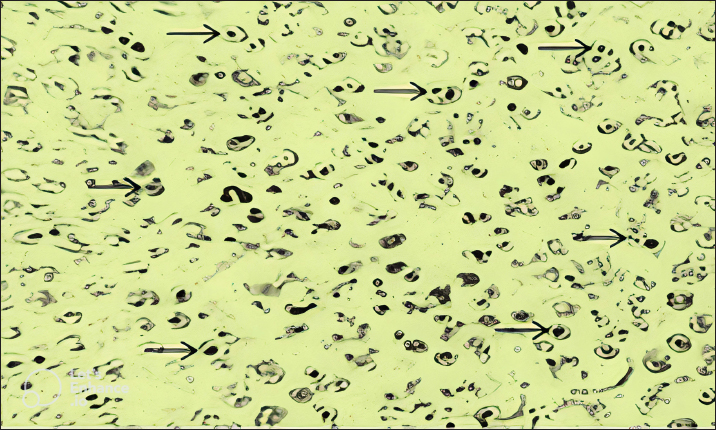 Fig. 2. Blood smears showing infection of red blood cells of sheep with Theileria schizonts.