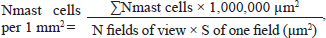 where ∑Nmast cells—the total number of mast cells in all studied fields. Morphometric evaluation after histochemical staining according to Masson and Picrosirius red, and immunohistochemistry (IHC) staining for type I and III collagen fibers was converted into points, taking into account the area and optical density (chromogeneity) in relative units: "1"—weak (0–0.3); "2"–moderate (0.3–0.6); and "3"–pronounced (>0.6). Immunohistochemical studySkin fragments after fixation for immunohistochemical analysis were prepared according to the standard protocol. Characteristics of antibodies are presented in Table 2. Cell nuclei were counterstained with Mayer's hematoxylin. The number of immunopositive cells was counted by three blinded pathologists in 10 randomly selected fields of view at ×400 magnification (in %). The number of collagen fibers in the sections was measured using an image analysis computer program (BMI plus software, BumMi Universe Co.) and expressed as a percentage of the area occupied by collagen fibers in the upper dermis. Stained sections were scored using a modified numerical scale from 0 to 3 (Abramov et al., 2007). Microscopic analysis was performed using a video microscopy system (microscope Leica DM2000, Germany; camera Leica ICC50 HD). Table 2. Primary and secondary antibodies for immunohistochemistry.